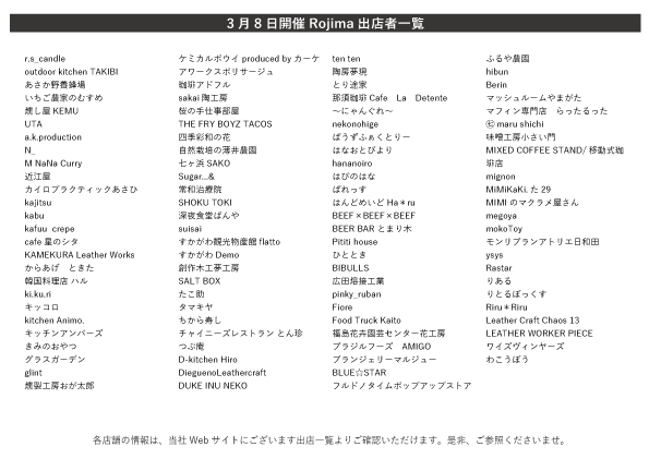 Rojimaをきっかけに、このエリアに足を運んで貰えたら。そしてエリアの変化を感じて貰えたら。そんな想いで、Rojimaを引き続き実施していきます。