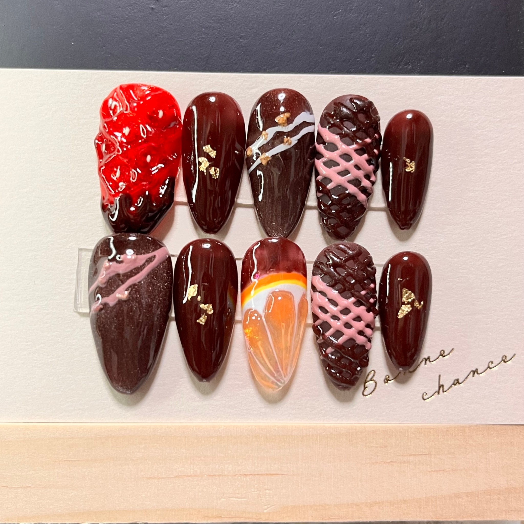 人気デザインのネイルチップと樹脂粘土で手作りしたリアルなミニチュアフードのアクセサリーをご覧ください♡現在ロジマ限定の販売となりますのでお見逃しなく⭐