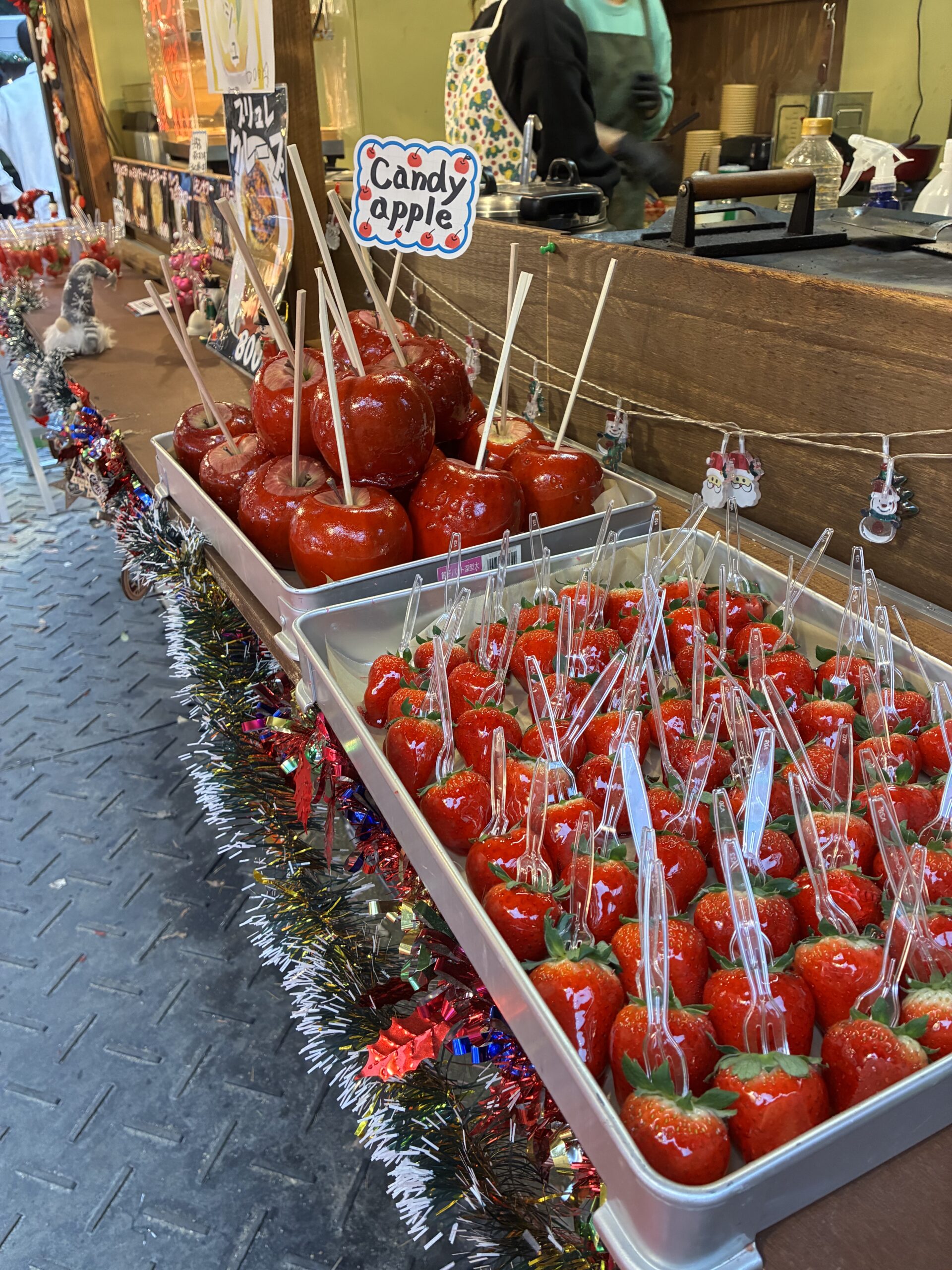 クレープ、りんご飴、いちご飴、チュロス、ソフトドリンク