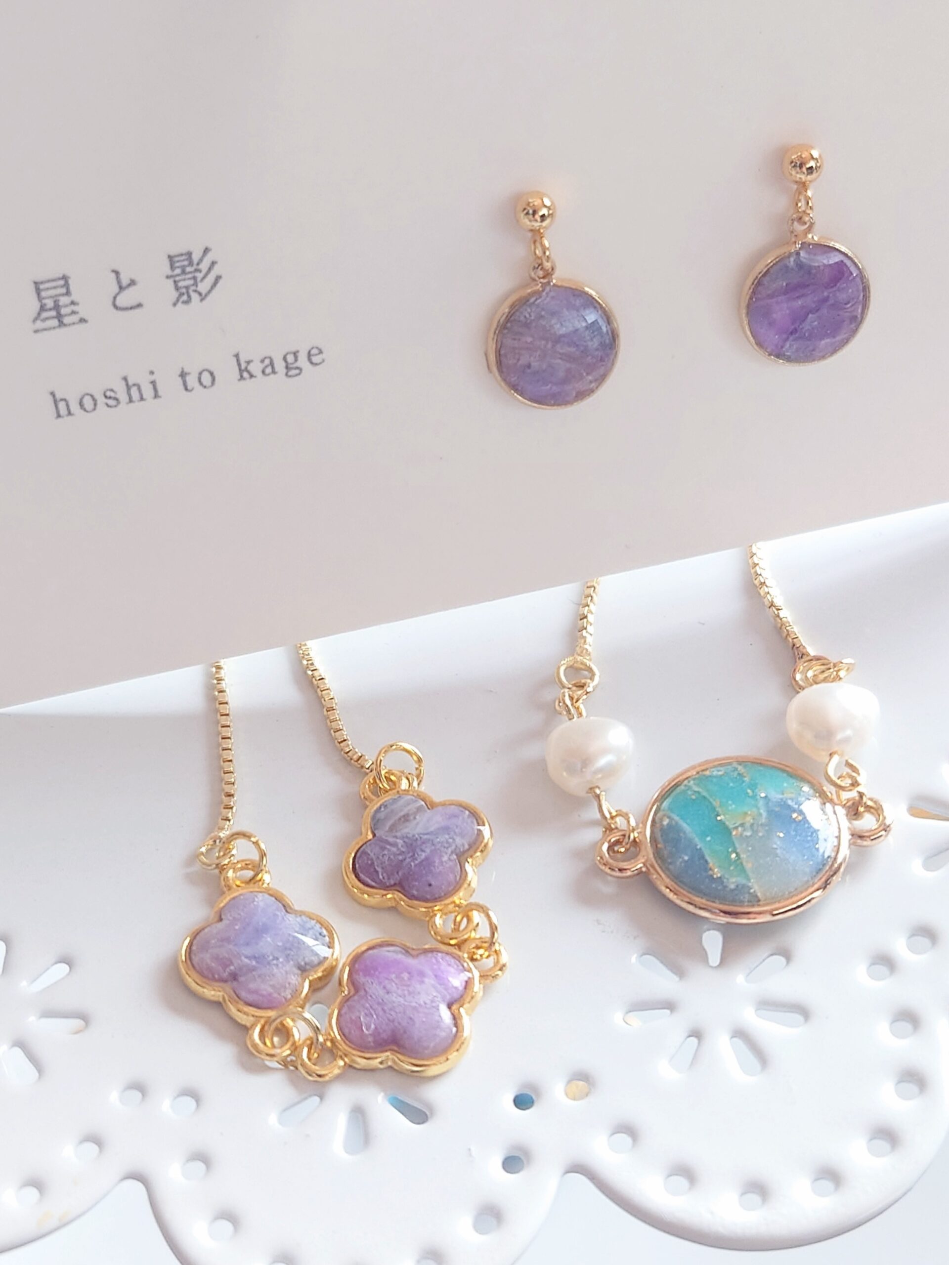星と影のふたりで大人かわいいアクセサリーをメインに、親子でも楽しめる小物を作っています。