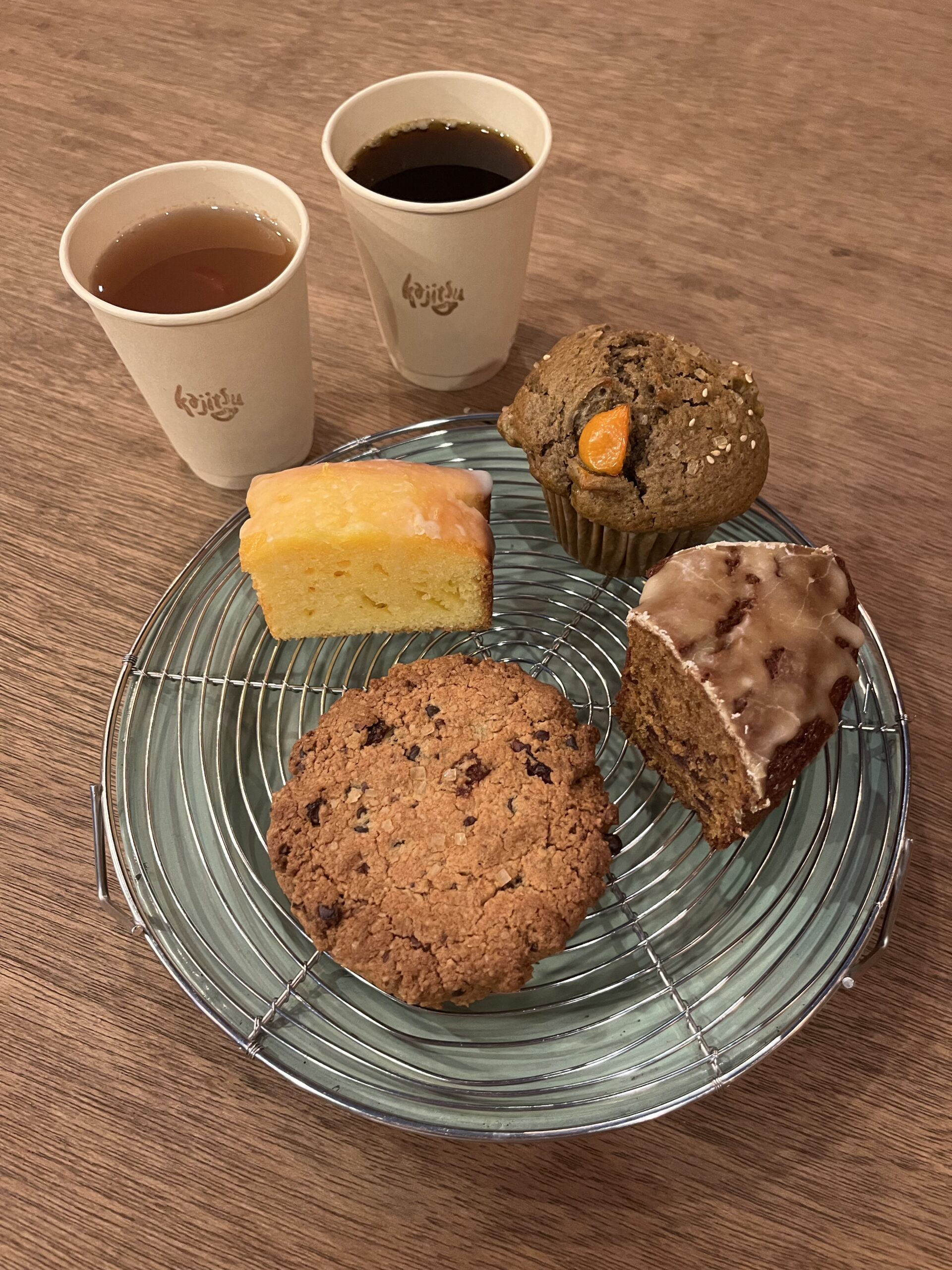 ドリップコーヒー、カフェオレ、ココア、チャイティーラテ、須賀川市りんご100%ジュース、ジンジャーブレッド、米粉ブラウニー、レモンケーキ、オートミールクッキー、アップルパイ