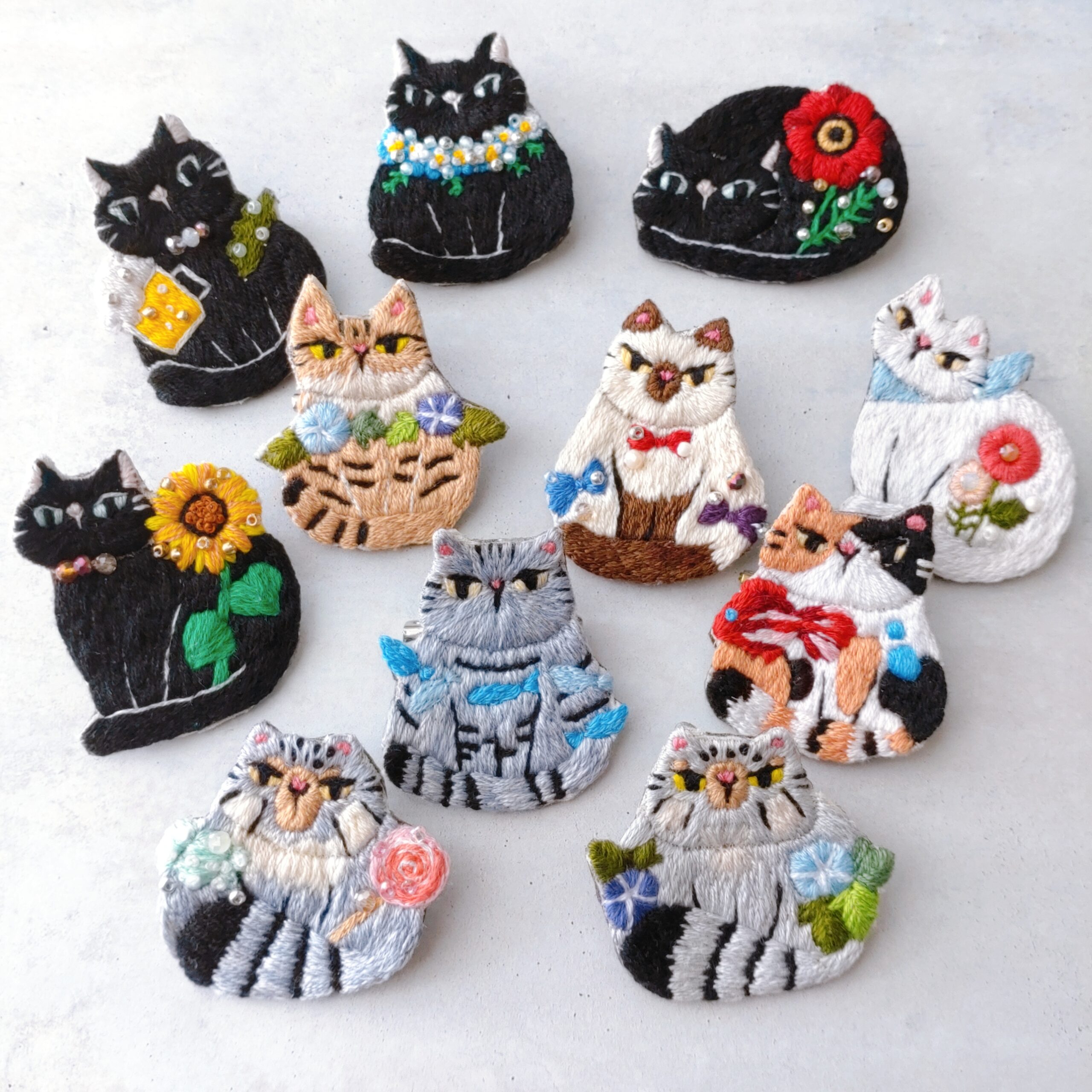 猫の刺繍雑貨(主にブローチ、その他ピアス、イヤリング、リング、ヘアアクセサリー、バッグチャーム)
