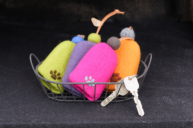 カラフルな羊毛のアクセサリーやバッグ。ペットのオーダー人形。みつろうラップなど。
