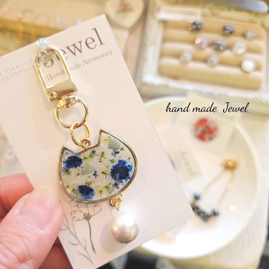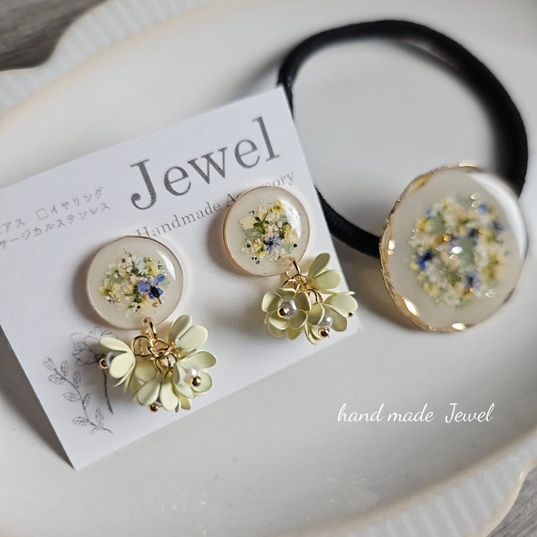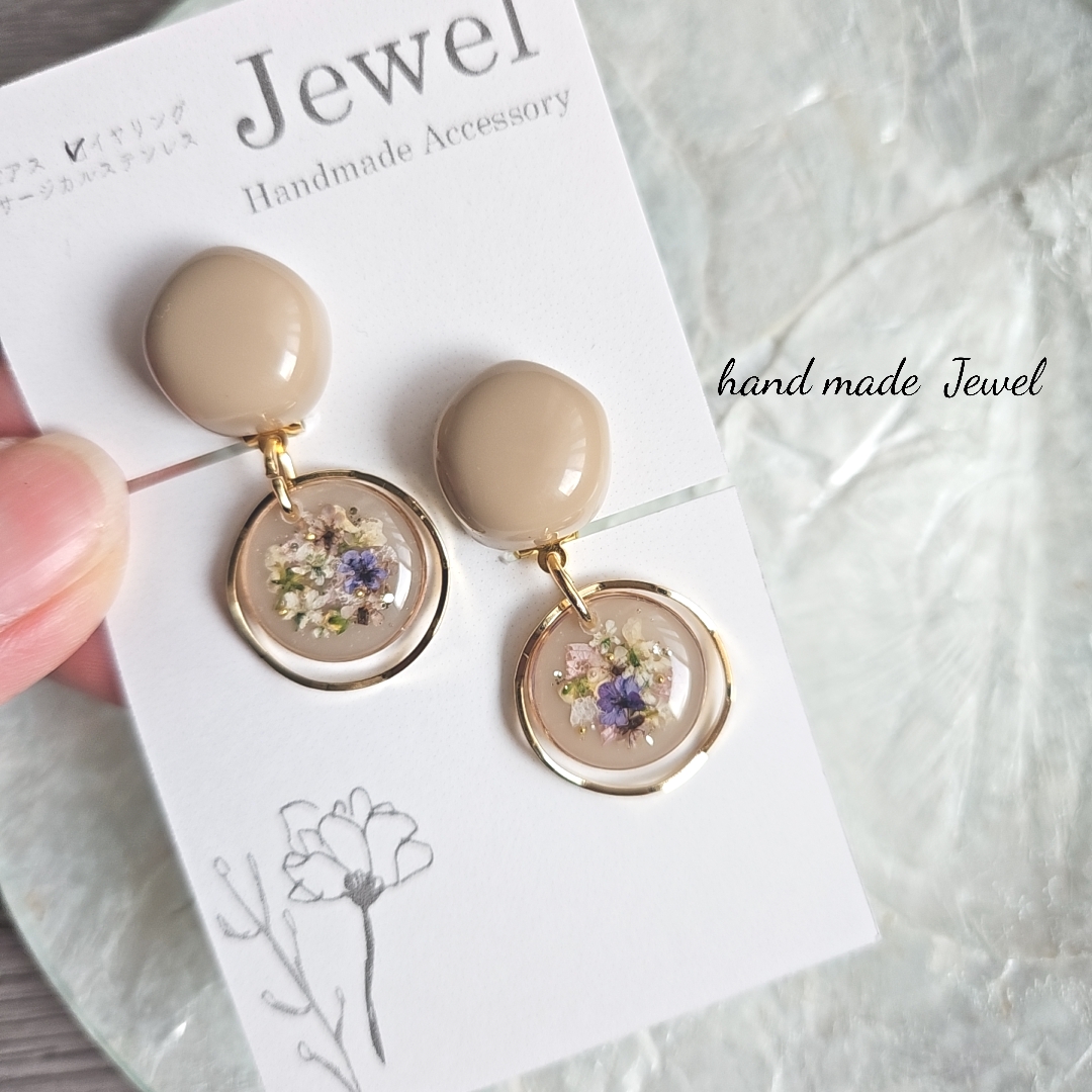 押し花を使ってデザインした レジンアクセサリーです。 季節ごとのコーディネートを 楽しめるよう、季節感溢れるデザインも 製作しています。
