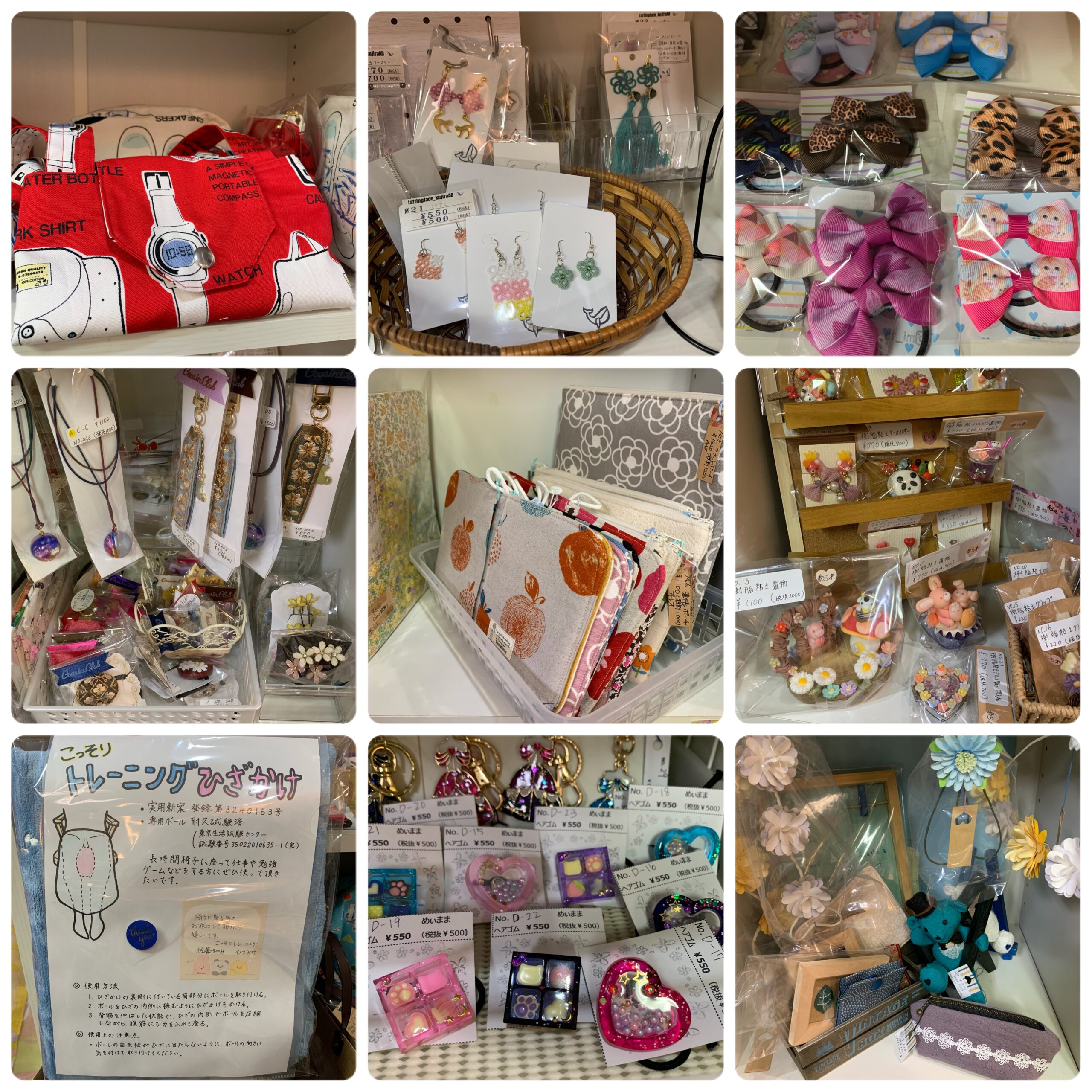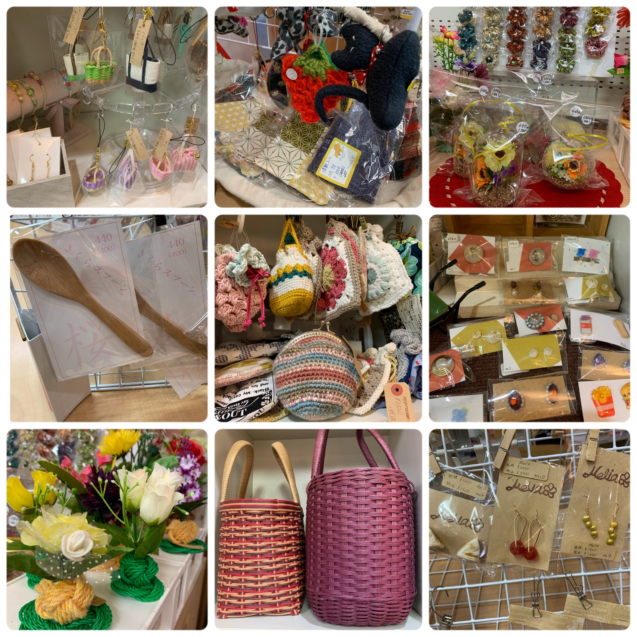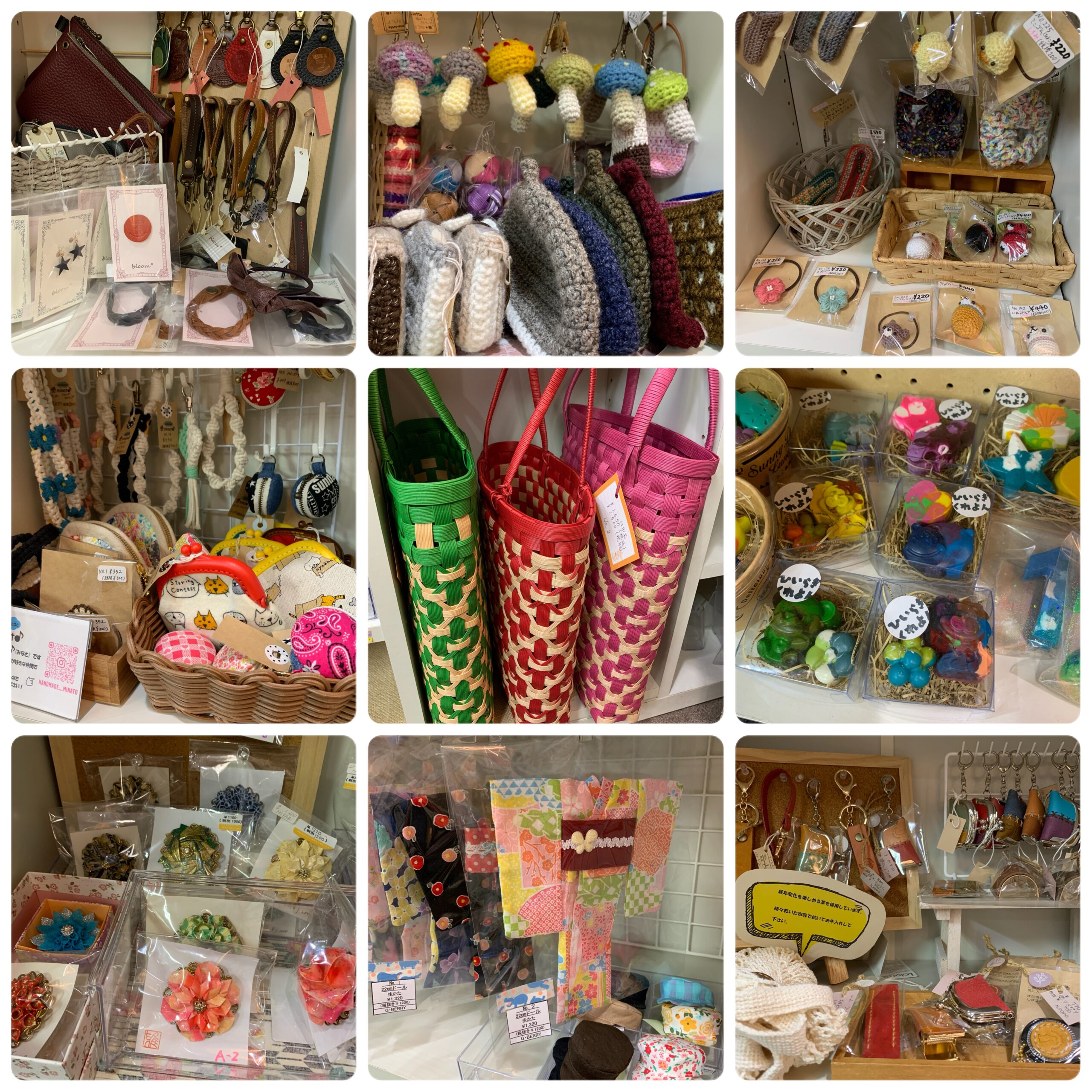 ろじま限定ワークショップ(めぃままさん、ひいらぎくれよんさん)布小物、革小物、アクセサリーなど約30名の作家さんの手作り小物販売