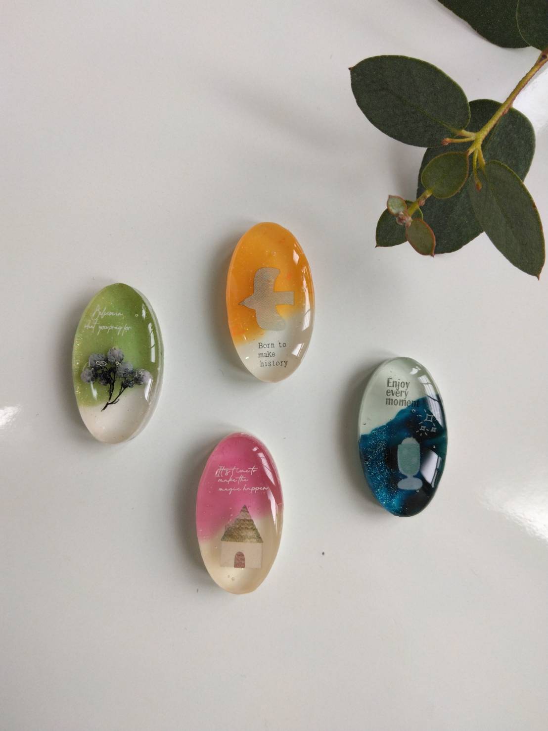 レジンの中にかわいらしいモチーフや花を詰め込んだアクセサリーや雑貨が並びます。お気に入りをみつけに来てください⭐