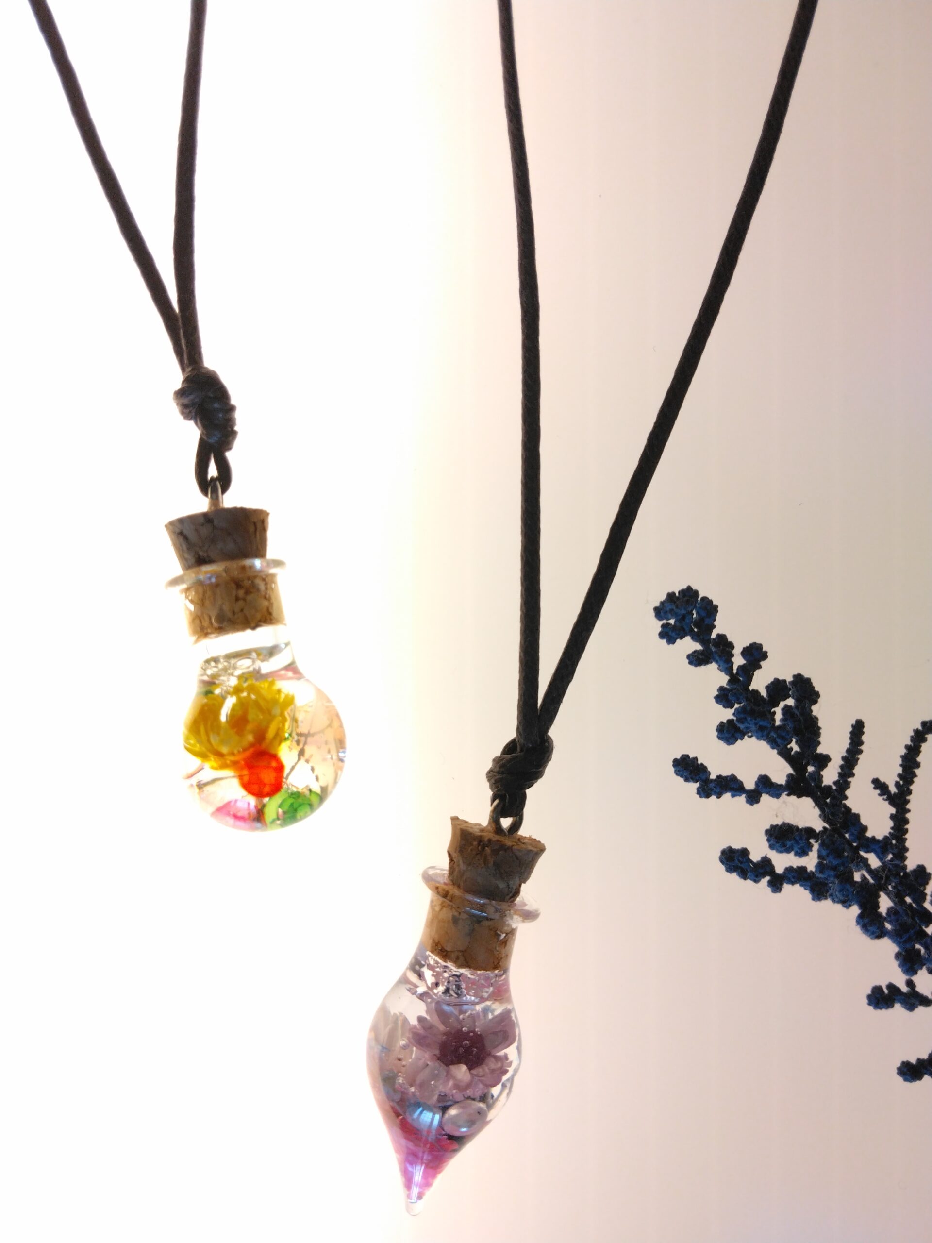 レジンの中にかわいらしいモチーフや花を詰め込んだアクセサリーや雑貨が並びます。春のプレゼントにもオススメです☆
